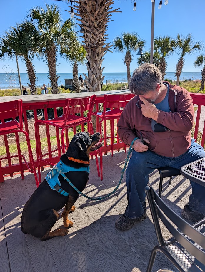 Luna #1 was adopted by mother and daughter team Rene and Ashley Fellows in 2021 from Max and Roxy's first litter. Rene passed away August 2025, and Ashley reached out to us for our guidance and help, realizing that Luna could no longer stay with her family. We have a Right of First Refusal clause in our adoption contract for situations just like this where the adopted Rottweiler needs to be rehomed. It gives us the right and accountability to participate in the rehoming process to ensure that a dog that we intentionally brought into this world doesn't wind up in a shelter to be euthanized.